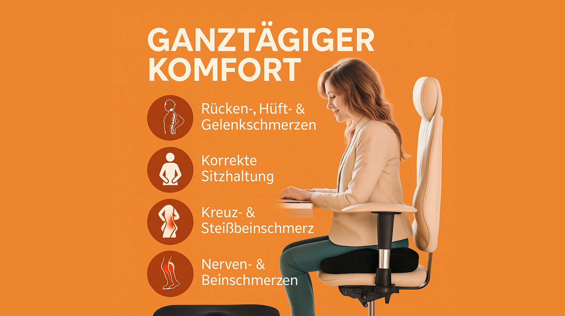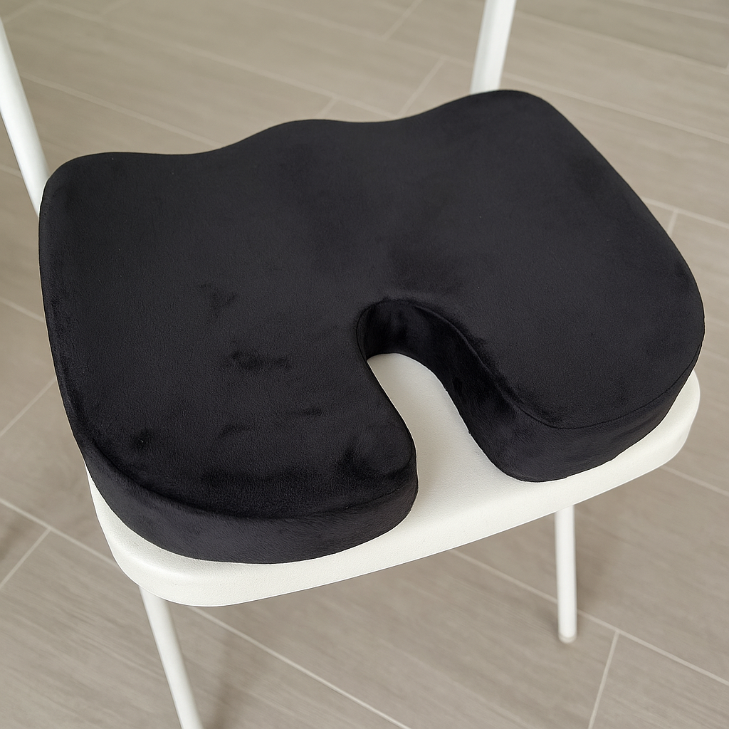 Erlebe spürbare Entlastung beim Sitzen mit unserem hochwertigen Sitzkissen aus Memory-Schaum. Das ergonomische U-förmige Design unterstützt eine gesunde Sitzhaltung, entlastet Wirbelsäule, Steißbein und Hüfte und sorgt für langanhaltenden Komfort – egal ob im Büro, Auto oder zu Hause.